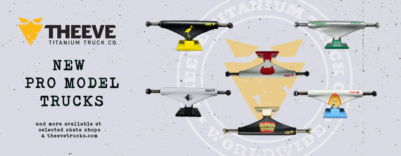 Theeve Trucks boasts one of the most versatile teams there is and proudly sponsors; Bastien Salabanzi, Brandon Turner, Dan Murphy, Jake Duncombe, Jordan Hoffart, Kerry Getz, Larelle Gray, Moose and many more. For more team info see here.