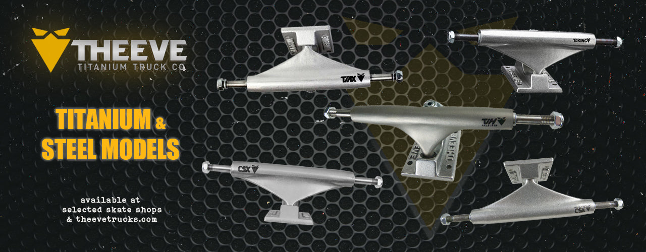 Since establishment in 2007 and until the present day, Theeve Trucks holds that; its TiHANGER (one piece axeless titanium truck) is twice as strong and 20% lighter than the average truck, that their TiKING (titanium axle and with a hollow steel kingpin) grinds better than any other skate truck on the market, that their TiAX (durable 6/4 base model titanium axle truck) runs second in durability and lightness only to the TiHANGER, and their CSX is probably the best all-round truck on the market.